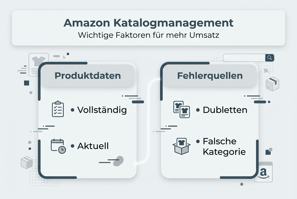 Viele Markeninhaber und Händler verlieren täglich Umsatz durch unvollständige Produktdaten, doppelte Einträge oder falsche Kategorisierungen auf Amazon. Diese scheinbar kleinen Fehler im Katalogmanagement führen zu schlechteren Rankings, niedrigeren Conversion-Raten und frustrierten Kunden. Professionelles Amazon Katalogmanagement umfasst die Pflege und Optimierung von Produktdaten, Bildern und Beschreibungen und ist der Schlüssel zu nachhaltigem Erfolg im E-Commerce. Dieser Artikel zeigt Ihnen, wie Sie häufige Fehlerquellen vermeiden, Ihre Produktpräsentation optimieren und dadurch messbare Umsatzsteigerungen erzielen.